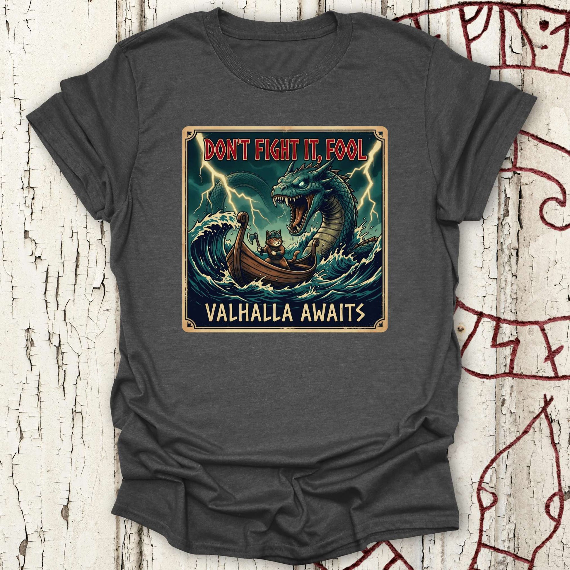 Don't Fight it, Fool Valhalla Awaits - Jörmungandr vs Viking Cat T-shirt