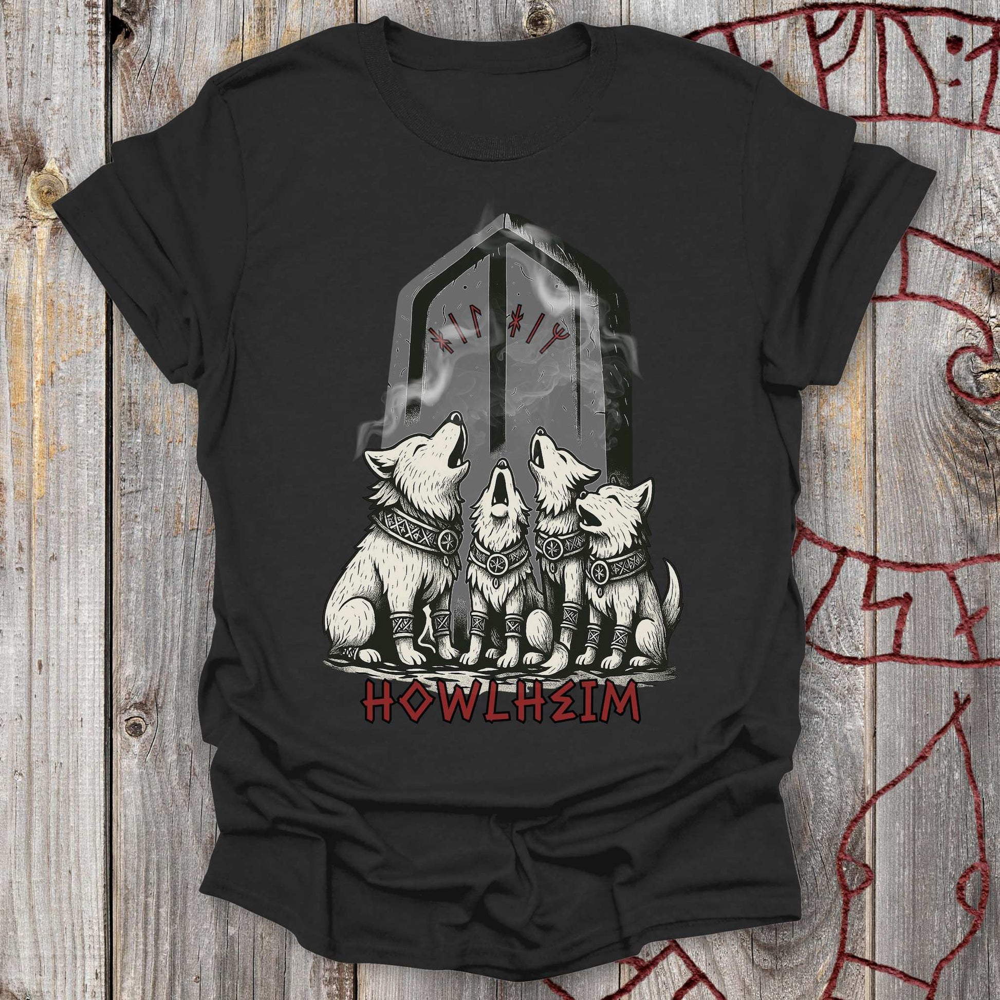 Howlheim Viking Guard Dogs T-Shirt is a design inspired by Helheim – the Norse underworld where those who did not fall in battle journey after death. The entrance to Helheim, or Hel, the death realm in Norse mythology. This funny Helheim dog shirt has Viking dogs, "Helheim" written in Younger Futhark runes, and a twist on the Norse myth. It blends history, humor, and dog spirit.