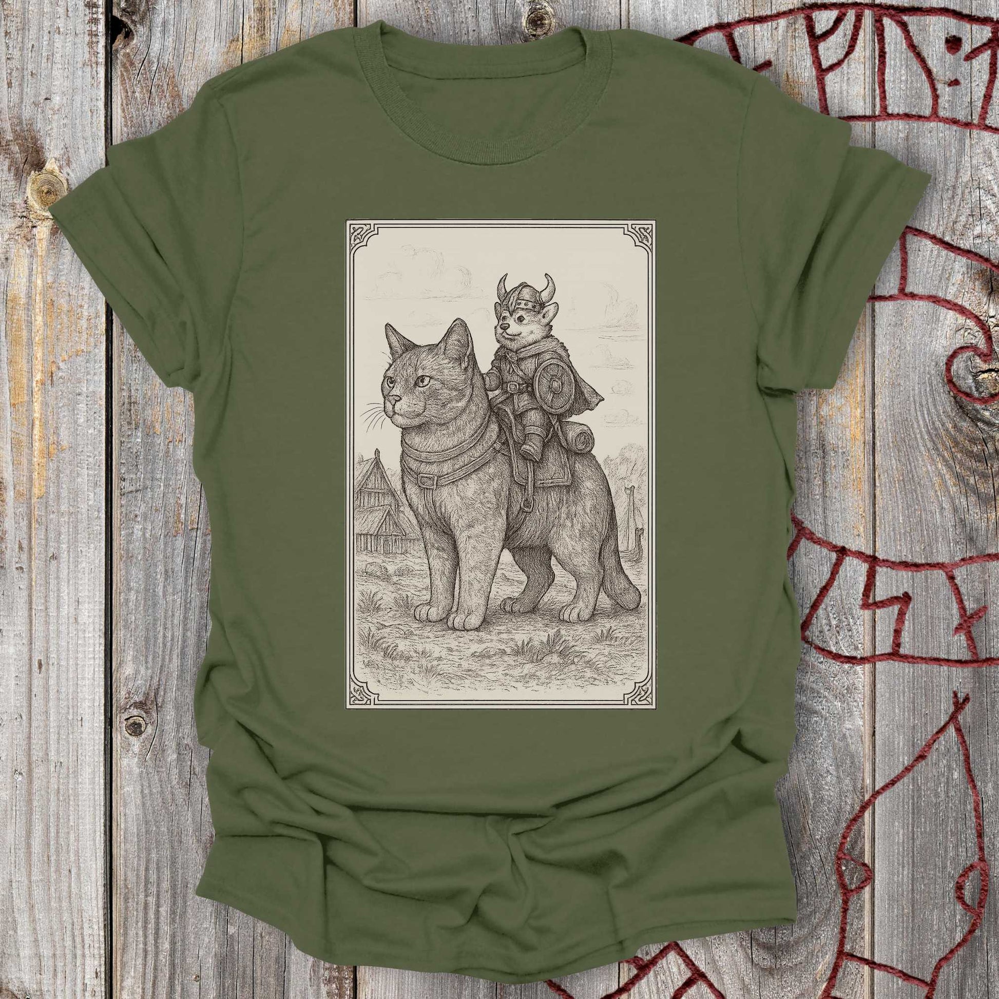 Medieval Cat With Small Viking Corgi – T-Shirt